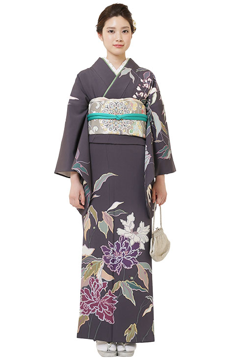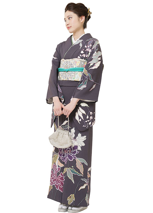 かすかに紫がかった大人っぽいグレーの縮緬地に、