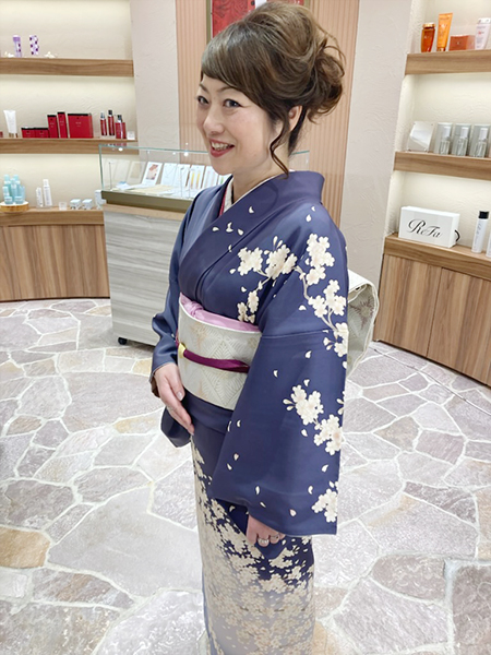 半衿は白地にピンクではなく、白地に金糸の刺繍に変わります。