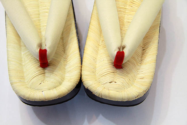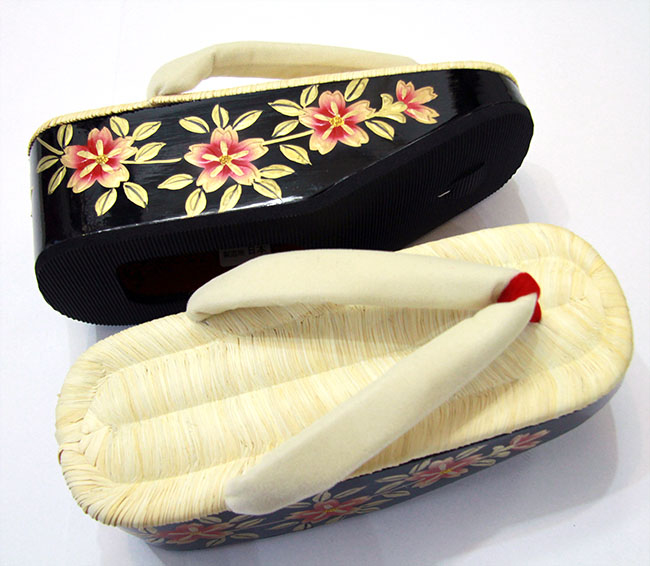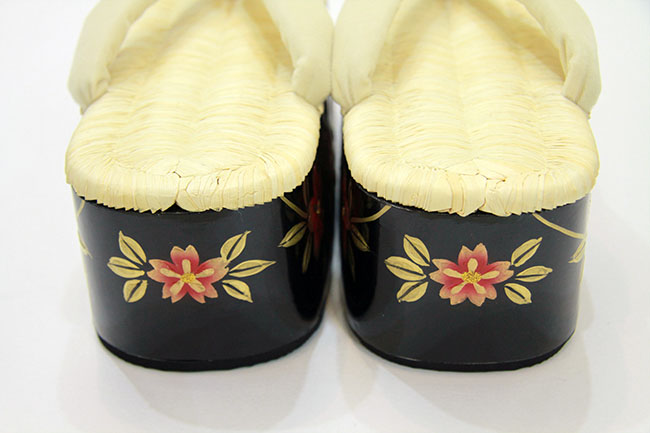 商品名 桐・畳表黒塗り・蒔絵小菊(赤白よろけ縞鼻緒)
